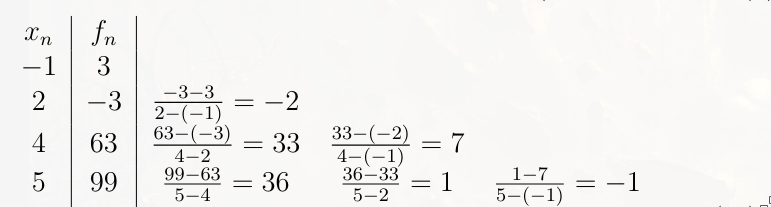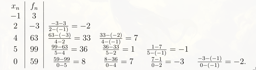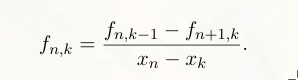$$ P(x) = \sum f_n L_n (x), \quad L_n = \prod_{n \neq m} \frac{x - x_n}{x_n - x_m} $$They are always 0, except where the roots are, there they are 1, we multiply that than with the function value at that place.