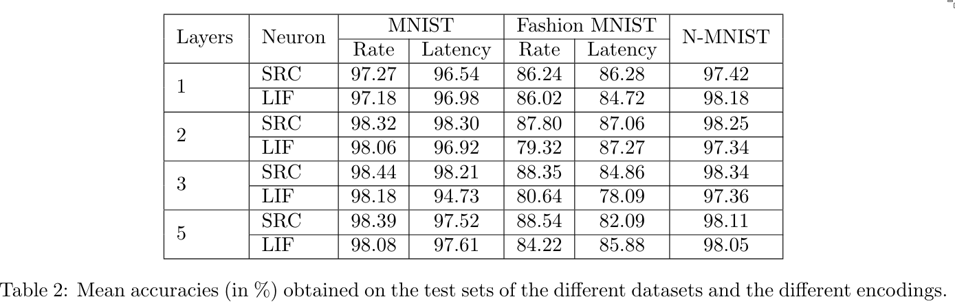 - In shallow networks, SRC achieves comparable or slightly better performance than LIF.