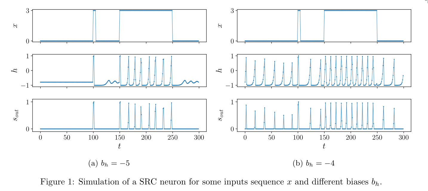 - One difference between SRC and LIF is that in LIF, the spike always lasts exactly one timestep. This is not the case for SRC.